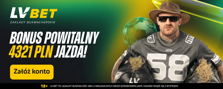 LV BET to LEGALNY polski bukmacher. Oferta dla osób pełnoletnich Bądź odpowiedzialny. Hazard to ryzyko.